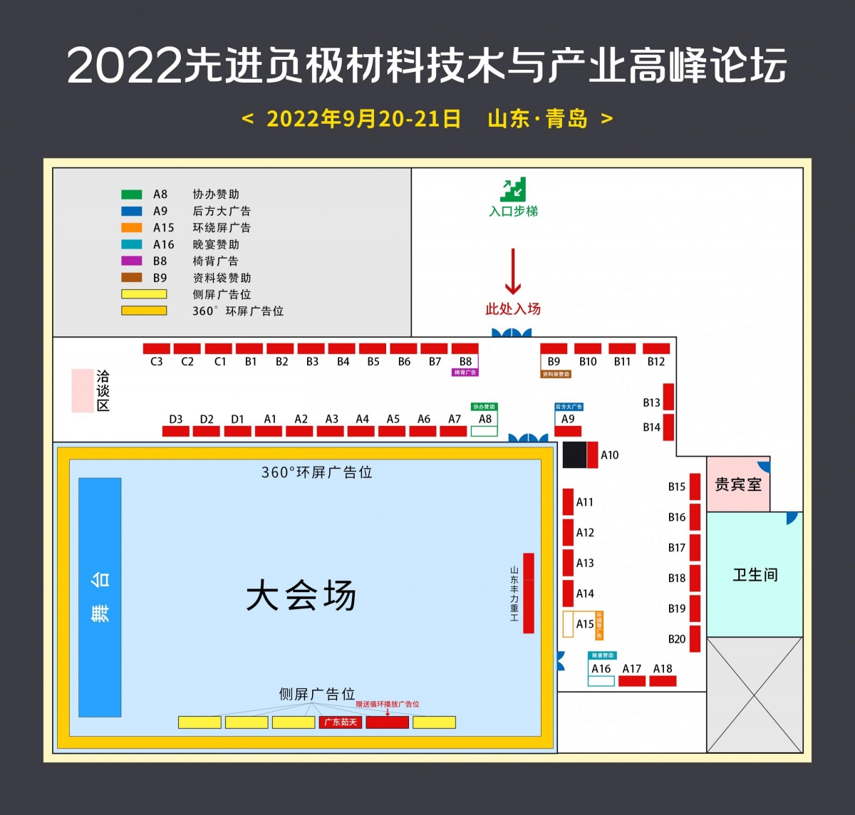 會(huì)場(chǎng)贊助(優(yōu)勢(shì)展位+會(huì)場(chǎng)大屏LOGO展示+協(xié)辦、晚宴、巨幅廣告、椅背廣告、茶歇、胸牌、禮品……)