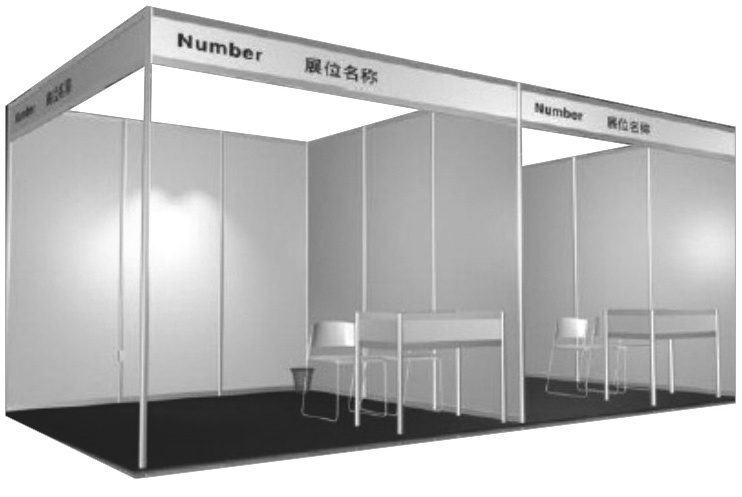 配置 | 在標準展位配置基礎上,增設地毯、廣告位、KT板門楣等,詳見效果圖。 | 長3米x寬3米x圍板高2.5米,含1張咨詢臺、2把椅子、1個220V電源插座、公司楣板; | 不含任何展具,展商自行設計。展館方須收取每平方米30元施工管理費,特裝限高3.8-4.5米。 |