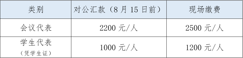 會議注冊費含會務費、資料費和餐費等費用,參會代表往返交通和住宿費自理,會議費標準如下表。