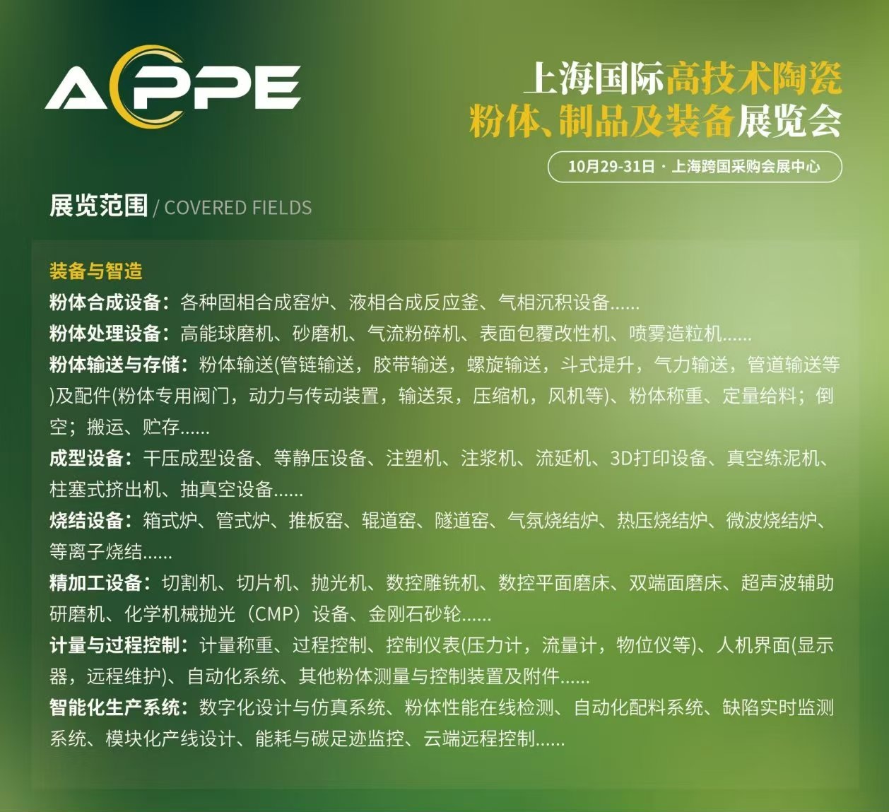 上海國(guó)際高技術(shù)陶瓷粉體、制品及裝備展覽會(huì)