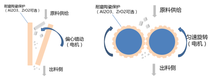 - 利用顎板的咬合擠壓或輥輪的擠壓和沖擊將原料進行破碎;