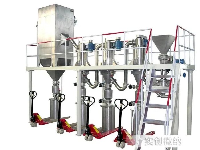 (5)易燃、易爆、易氧化的物料可用惰性氣體作介質實現閉路分級,惰性氣體循環使用。 多級分級串聯:可連機配置1~5級氣流分級機,將物料按粒度段大小分成若干粒度段生產粒度要求分布窄的產品。