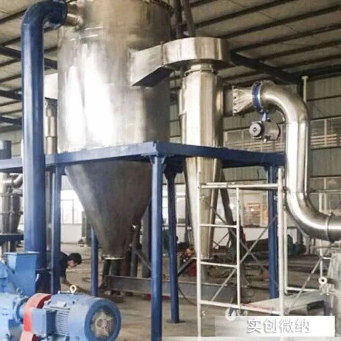 (2)分級粒徑更細,可實現納米級分級,且顆粒球形度、粒徑分布均勻度更佳。高溫蒸汽磨粉碎強度更高,是傳統氣流磨的兩倍以上,沖擊力度是傳統氣流磨四倍以上,比常規氣流磨節能30%。例如,根據需要,可加工10um的超細粉體,甚至是1-2um的超微粉體。