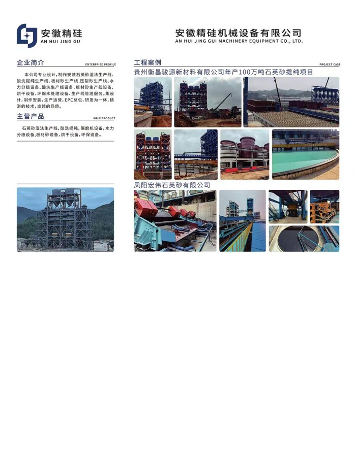 公司專業(yè)設(shè)計(jì),制作安裝石英砂濕法生產(chǎn)線、酸洗提純生產(chǎn)線、板材砂生產(chǎn)線,壓裂砂生產(chǎn)線、水力分級(jí)設(shè)備、酸洗生產(chǎn)線設(shè)備,板材砂生產(chǎn)線設(shè)備、烘干設(shè)備、環(huán)保水處理設(shè)備、生產(chǎn)線管理服務(wù)。集設(shè)計(jì),制作安裝,生產(chǎn)運(yùn)營,EPC總包,研發(fā)為一體,精湛的技術(shù),卓越的品質(zhì)。