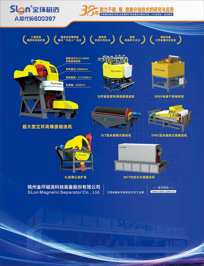 公司軟硬件設施齊全,擁有各種大中型先進機加工裝備,可滿足超大規格選礦裝備的加工制造。經過30多年的發展,公司已經形成了以SLon立環脈動高梯度磁選技術為核心的磁選產品體系,產品性能和品牌影響力業內遙遙領先,并且研發了集離心重選、智能礦石分選等當今前沿的選礦技術裝備,形成了一專多能、齊頭并進的產品體系和發展格局,形成了集生產制造、科技研發、試驗技術研究、檢驗檢測等綜合實力,是國內外知名的選礦技術方案解決供應商。