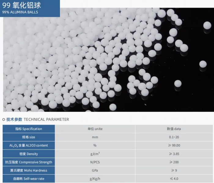 99 氧化鋁研磨球具有高比重、高密度、超低耗等特點,主要應用于電子陶瓷、半導體材料、精細化工、涂料、醫藥、微粉精細加工等行業;適用于各式砂磨機、攪拌磨機及滾筒球磨機等設備