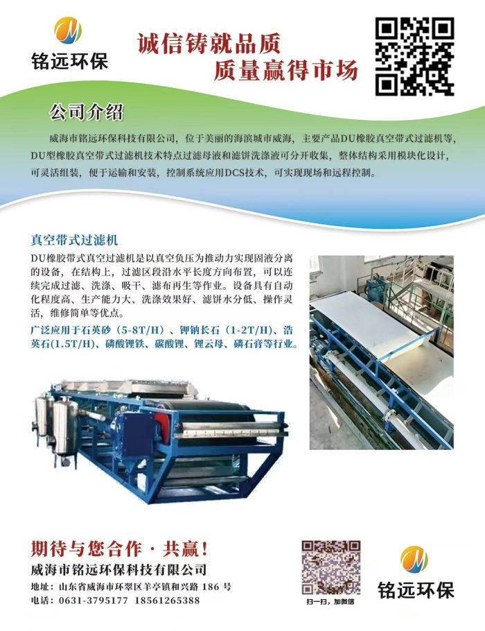 威海市銘遠環保科技有限公司,位于美麗的海濱城市威海,主要產品有各種聚氨酯旋流器、水力旋流器、三產品重介質旋流器、水力分級濃縮旋流器系列、重介質旋流器系列、耐磨管件系列、耐磨漿閥系列、耐磨材料系列、脫硫脫硝用旋流器系列、粗煤泥分選機、 TDU橡膠帶式真空過濾機、真空過濾機等。
