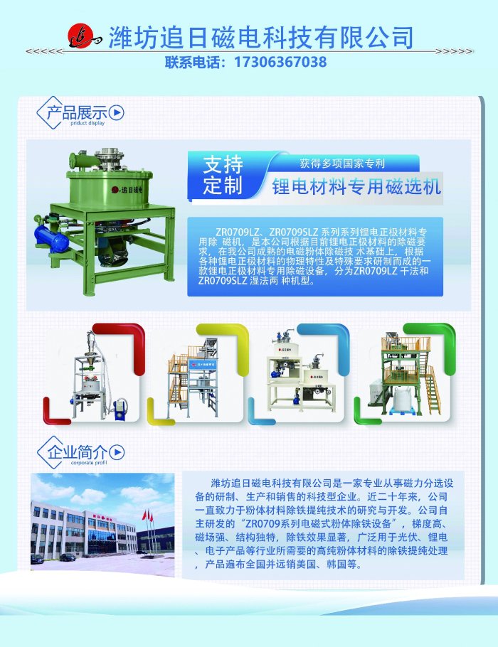 【展商推薦】濰坊追日磁電科技有限公司邀您出席2025高壓實磷酸(錳)鐵鋰技術大會