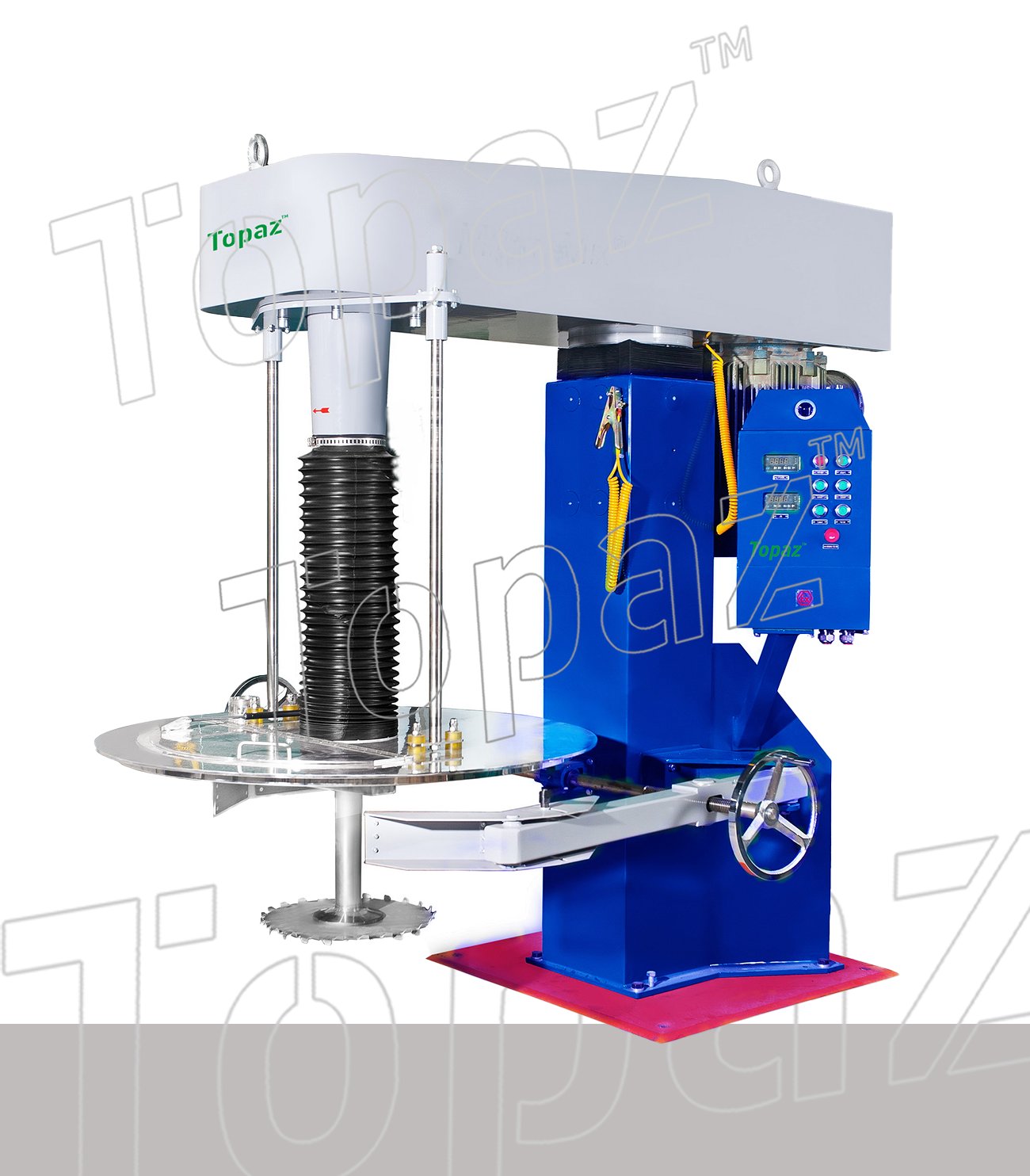 拓帕高速分散機由機械傳動和速度控制系統組成。高速攪拌軸在分散過程中可自由升降至任何液面位置。整個傳動過程中設有過載保護,可360°旋轉定位,實現1機3缸模式設計,節省空間和工作時間。