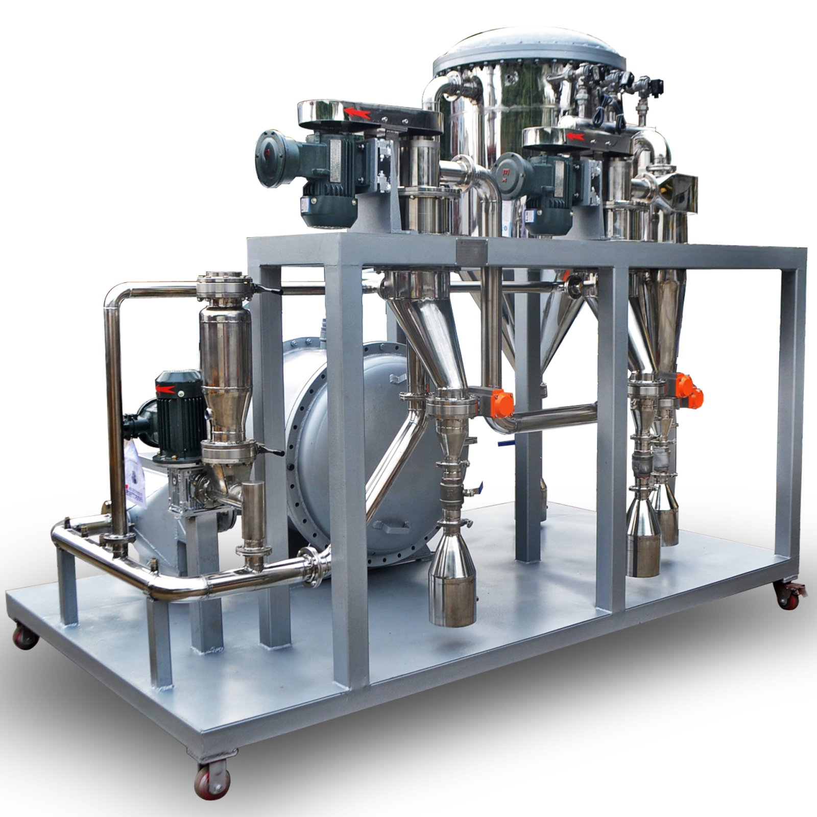 成套系統為新型氣流分級系統,以惰性氣體作為分級工作介質,成套設備與物料接觸部件全部采用不銹鋼(304)制造,其生產制造工藝為我公司成熟技術,質量可靠,性能穩定。在金屬粉末、易氧化原料及易燃易爆物料加工中已得到廣泛應用。