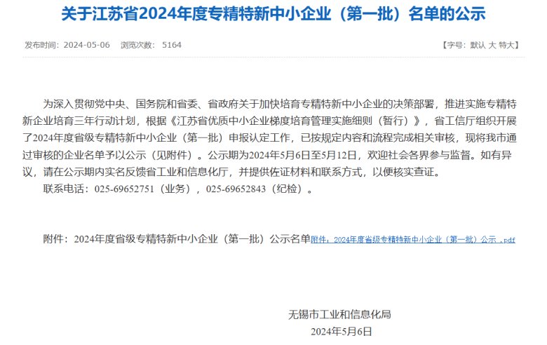 近期,無錫市工業和信息化局公布江蘇省2024年度專精特新中小企業(第一批)名單,無錫貝斯柯自動化科技有限公司經過嚴格的評審和篩選,成功上榜!省專精特新中小企業具備專業化、精細化、特色化、新穎化四大優勢