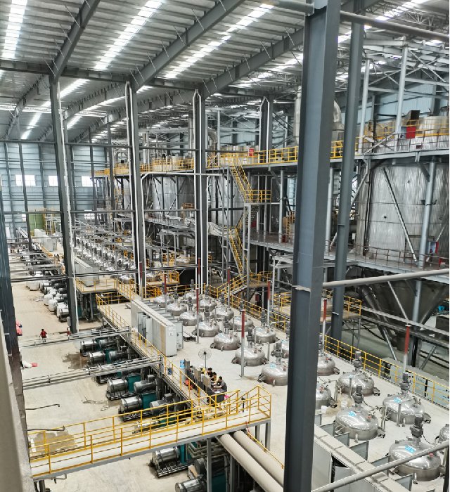 該配 料 系 統 主 要 流 程 如 下 :通 過 噸 袋 拆 袋 / 小 袋 拆 袋 將 磷 酸 鐵 、碳 酸 鋰 、葡 萄 糖 等 原材料投進原料儲存倉,通過自流式下 料或機械輸送或氣力/真空輸送