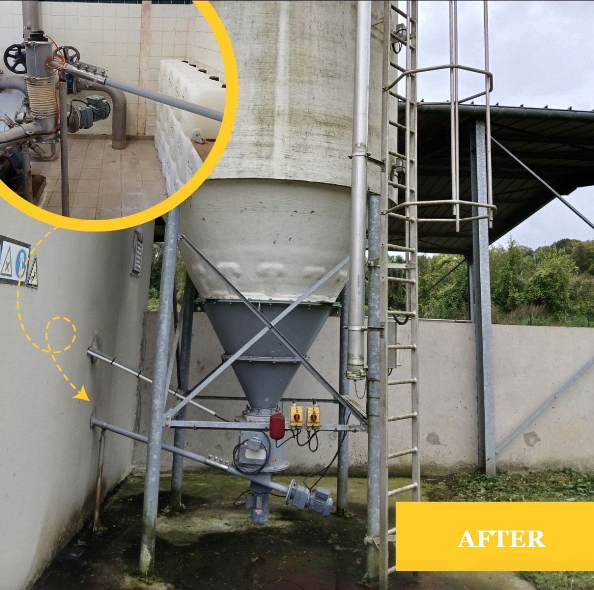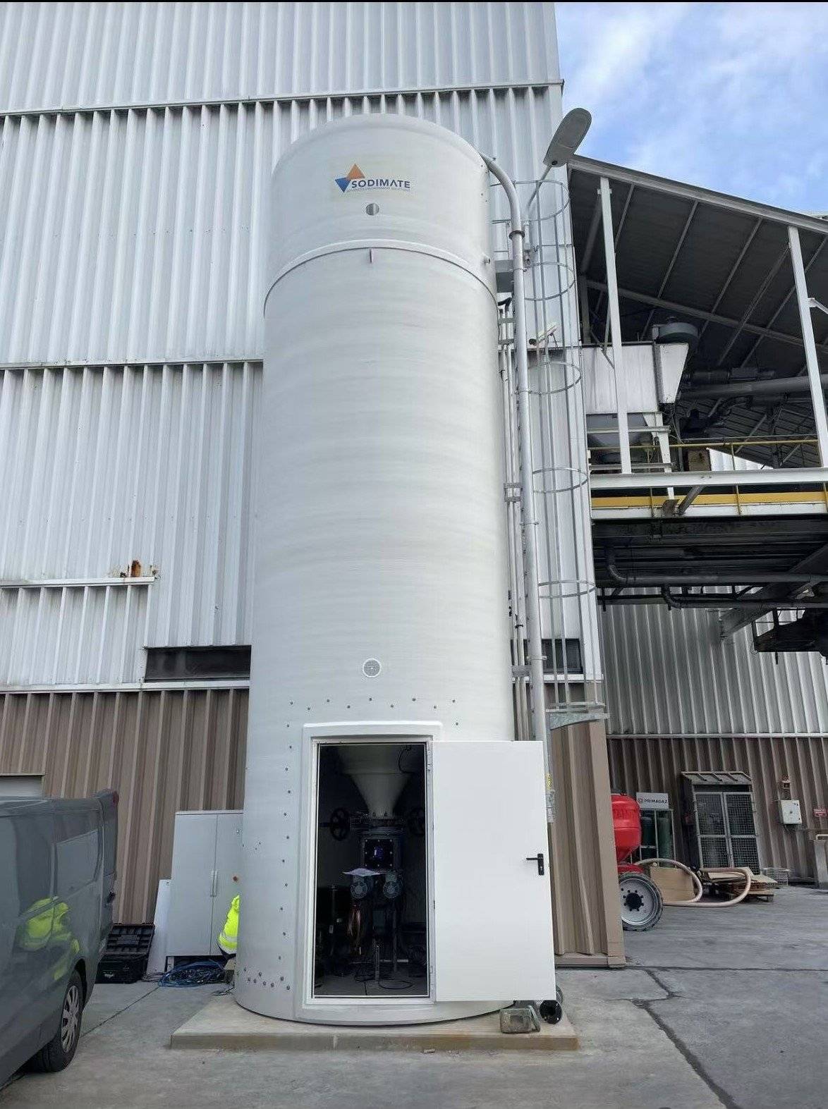為了優化 Sorbaca micro型號石灰的儲存和投加,Sodimate為業主提供了全套交鑰匙設備。包括有:一套料倉存儲系統、一套機械破拱下料&計量輸送投加一體化系統,以及2套氣力輸送投加系
