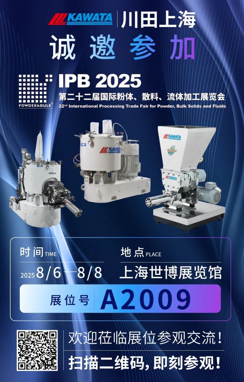 IPB 2025第22屆國際粉體、散料、流體加工展覽會(下稱IPB粉體展)將于8月6~8日在上海世博展覽館舉辦。展會規模預計17,000平米,將吸引300家展商、15,000名專業觀眾到場。屆時,川田