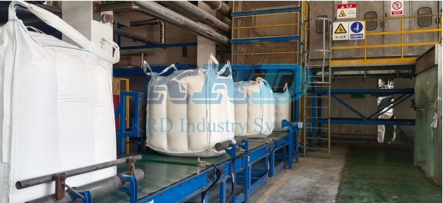 自動噸袋卸料站由輸送系統、抓袋系統、切割系統、取樣系統、自動破袋裝置、破塊器、除塵器、廢袋收集裝置組成。通過設置有噸袋隨行機構、進噸袋傳送機構、割噸袋機構與廢袋螺旋回收機,能夠使得噸袋拆卸全自動化進行,拆包效率極高,拆噸袋過程沒有人工參與,全程密閉,頂部裝有除塵系統,健康環保,經濟效益顯著。