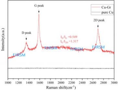 石墨烯包覆銅粉 1 、威拉里生產的球形銅粉顆粒上包覆少層或單層石墨烯,如圖 2 所示為 純銅粉和石墨烯包覆復合銅粉的拉曼光譜。測試表明,石墨烯缺陷較少