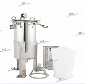 單袋式過濾器是一種壓力式過濾裝置,主要有過濾筒體、過濾筒蓋、不銹鋼濾袋加強網等主要部件組成,濾液由過濾機外殼的旁側入口管流入濾袋,濾袋本身是裝置在加強網籃內,液體滲透過所需要細度等級的濾袋即能獲得合格的濾液,雜質顆粒被濾袋攔截。該機更換濾袋十分方便,過濾基本無物料消耗。
