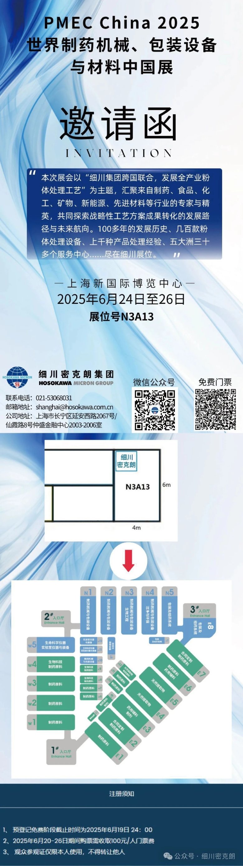 細(xì)川密克朗(上海)粉體機(jī)械有限公司將于8月6日-8日在上海世博展覽館參加第二十二屆國(guó)際粉體、散料、流體加工展覽會(huì)(IPB2025),歡迎參觀展位: A4201,恭候蒞臨!掃描下圖二維碼,一鍵完成在線觀