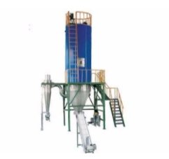 采用二流體(或三流體)噴嘴式霧化器,利用壓縮空氣(或蒸汽等)與料液在亞音速或超音速范圍的速度差,將常規和有一定粘性的物料霧化成微細霧滴,與干燥熱介質迅速進行熱交換,在極短的時間內干燥成粉。
