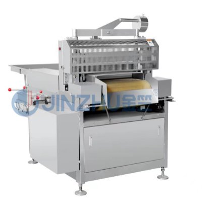 特制的輸送帶和壓料機構將物料按設定的距離,作步進移動,直線運動的切刀機構直接在輸送帶上切斷物料。