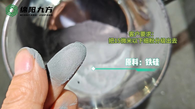 一、實驗背景客戶需求:將鐵硅粉體中15微米以下的細粉高效分離,確保成品粒度分布符合標準。 二、實驗設備機型:綿陽九方 JFF-100型氣流分級機檢測儀器:歐美克激光粒度分析儀 三、