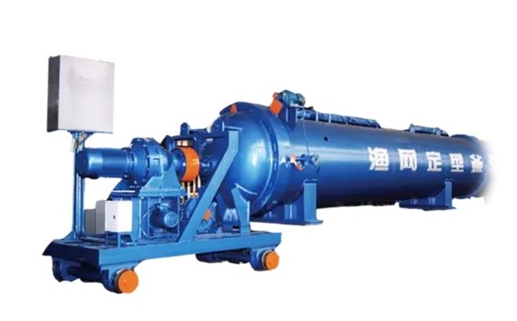 漁網定型釜用于對大中型漁網進行定性處理,編制好的網片兩端固定在釜內的網架上,在一定的溫度壓力下,使網片上的每根單絲及其結點均勻受一定的拉力作用,一經冷卻后,網片的每根單絲和結點因拉力作用而**變形,從而達到提高漁網品質的目的。漁網釜已成為各種漁網及其它網制造行業的關鍵設備。