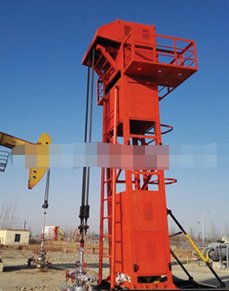 (3)塔架式長沖程抽油機:主要采用的是雙循環(huán)鏈條傳動式結(jié)構(gòu),雖然具有一定的節(jié)能效果,但由于該機是主梁呈M型分布在雙循環(huán)鏈條中間又與換向機構(gòu)并聯(lián),使雙循環(huán)鏈條運動變?yōu)橹鲬依K的上下往復運動,鏈條磨損快,間隙調(diào)整頻繁。同時,維修較為麻煩。再就是鏈條潤滑條件要求高,潤滑油儲量多,溢油問題時有發(fā)生,不具備安全環(huán)保的要求。同時,該機不能實現(xiàn)沖程長度的任意調(diào)整,配重箱在外也不太安全,作業(yè)時卸載需要吊裝機械配合。