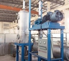 本公司采用真空蒸發結晶蒸餾三位一體的裝置來處理富馬酸廢水。富馬酸廢液通過三效蒸發結晶器進行蒸發濃縮,當達到一定濃度 時(25%~30%),由濃漿泵打到冷卻沉淀槽進行冷卻結晶,晶漿去 離心分離,離心分離的母液返回三效蒸發裝置再次進行蒸發濃縮,三效蒸發出來的冷凝液去組合精餾器,此時蒸發出來的冷凝水的 COD<450mg/L,PH=5~6。組合精餾器的濃縮液經過初步降溫后去 冷卻沉淀槽,同樣地經過離心分離之后母液再次返回三效蒸發濃縮。