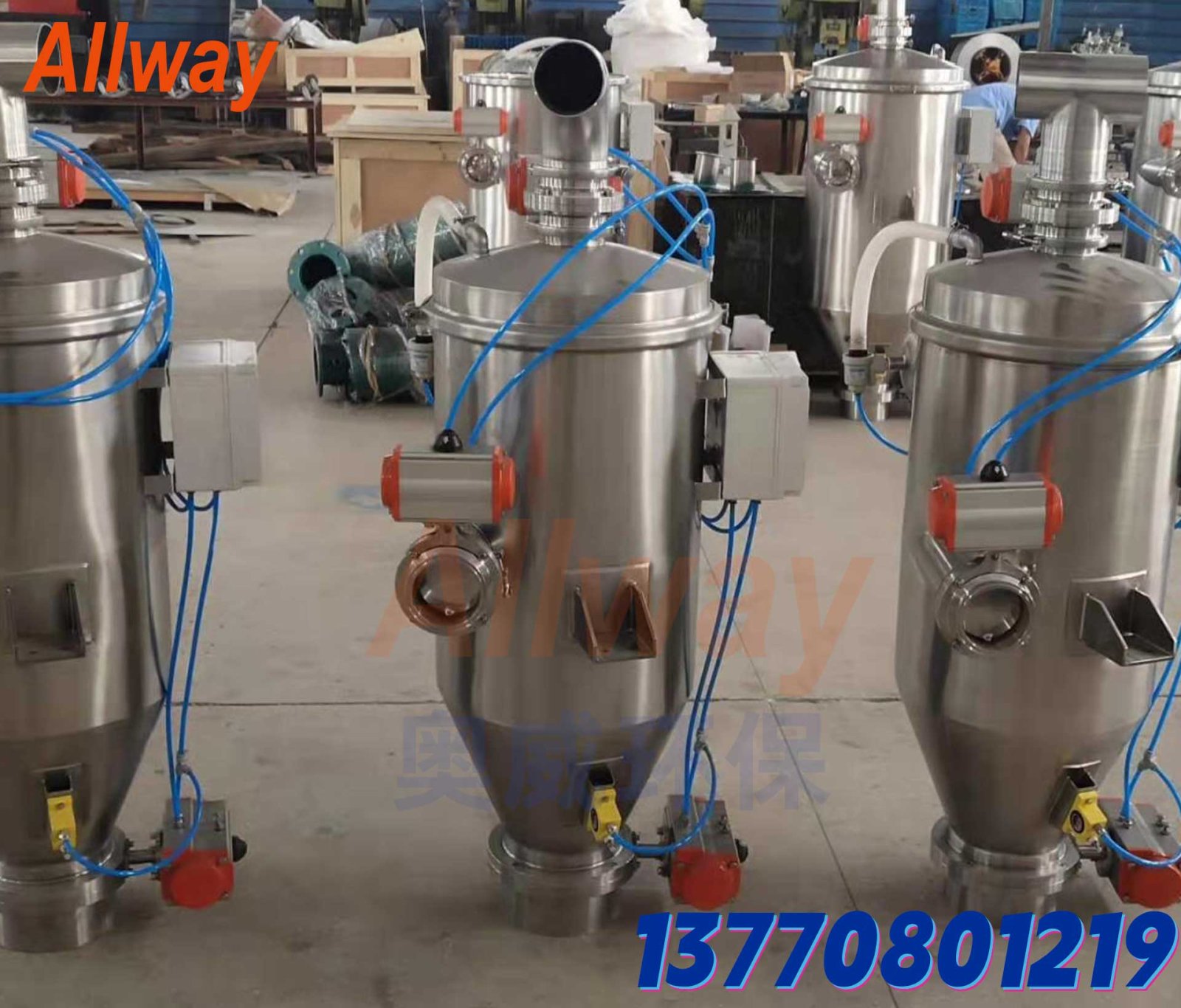 1、氣動(dòng)控制器控制真空泵啟動(dòng),在分離倉內(nèi)產(chǎn)生真空,迅速將空氣和物料從進(jìn)料位置,經(jīng)軟管或硬管從吸料口進(jìn)入到真空輸送設(shè)備中,從而達(dá)到輸送物料的目的。