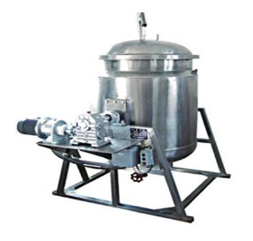 工作原理:裝有蒸汽夾套的鍋體,可分別向夾套或鍋體通入蒸汽,蒸煮鍋體內的物料。
