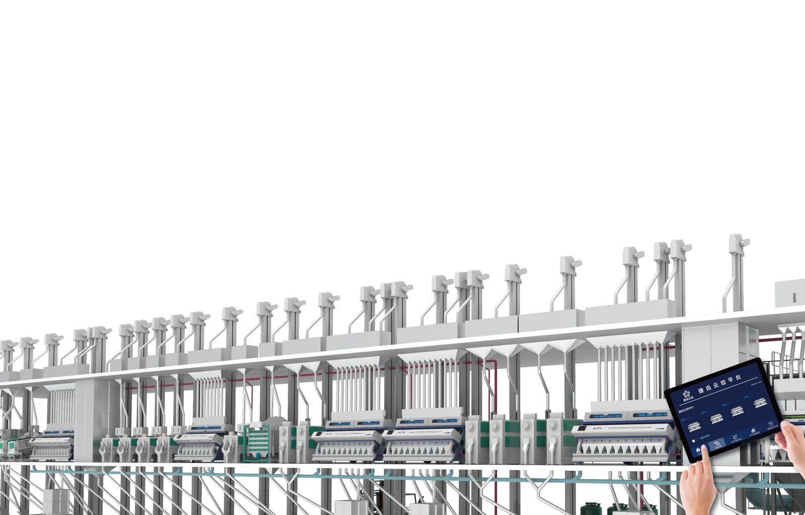 捷迅云控是實現真實數據來源上進行數據驅動決策的產線控制系統,通過捷迅自主研發S+智能分析儀及云控服務器協同,實現全天候不間斷檢測大米成品碎米率,并反饋到補碎終端和選碎終端,實時精準調控,保障大米碎米率