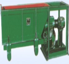 槽式給料機(jī)可以架設(shè)于地面,也可以吊裝在礦倉卸料口上。槽底板作往復(fù)運(yùn)動(dòng),其沖次為 20-60 次/min, 沖程為20-200mm。沖程可由驅(qū)動(dòng)裝置偏心輪進(jìn)行適當(dāng)調(diào)整,偏心距為沖程之半。據(jù)一些選礦廠生產(chǎn)實(shí)踐,對于粘性礦石,偏心距不應(yīng)小于 30mm 。槽式給料機(jī)的槽體寬度約為給料較大粒度的 2-2.5 倍。較大的槽式給料機(jī),可滿足小于 500mm 粒度鐵礦石的給礦。較常選用的規(guī)格是 980*1240 槽式給料機(jī),其給料粒度為 350-0mm ,適于作為 400*600 鄂顎式破碎機(jī)的給料設(shè)備。
