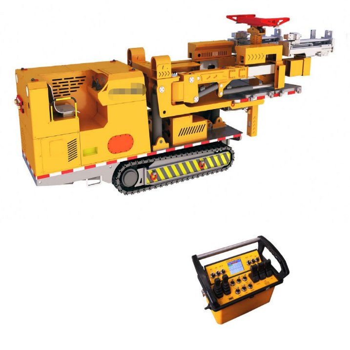 遙控型煤礦用液壓錨桿鉆車(chē)是在標(biāo)準(zhǔn)型錨桿鉆車(chē)的基礎(chǔ)上,增加遙控功能,來(lái)實(shí)現(xiàn)錨桿鉆車(chē)的遙控控制,每臺(tái)鉆車(chē)配備2臺(tái)遙控器,能流暢的操控錨桿鉆車(chē)的全部動(dòng)作功能,同時(shí)電控箱內(nèi)預(yù)留干兆以太網(wǎng)接口,可方便的接入礦方以太環(huán)網(wǎng),來(lái)實(shí)現(xiàn)錨桿鉆車(chē)的遠(yuǎn)程傳輸和控制。