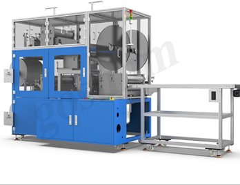 自動翻轉(zhuǎn)折邊->自動頂部彈力筋焊接->自動中部彈力筋焊接->自動邊封焊接->自動切斷