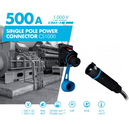DECONTACTOR”系列是自帶開關功能的插頭插座。本款產品的電流范圍是500A,是一款單芯電源連接器,為單芯電源提供解決方案,自動實現IP66/67防塵防水等級,滿足多種惡劣使用場景。MARECHAL ELECTRIC 提供的就是如此簡易直觀的插頭插座連接方式,并保證使用安全滿足多種工業用電連接需求