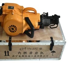 YN27C型內燃鑿巖機具有礦山開采鑿孔、建筑施工、地質勘察、水泥路面、柏油路面等各種劈裂、破碎、搗實、鏟鑿等功能,廣泛用于礦山、筑路、采石、建筑、鐵路搗固、地質勘察、國防工程等。