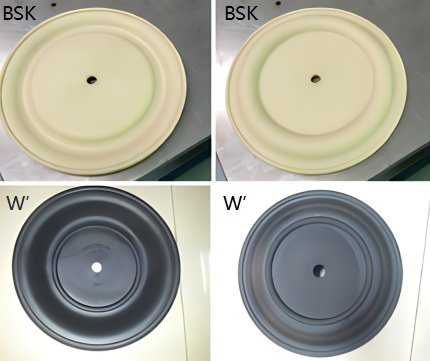 瓦楞紙板行業所收集到的信息,很多品牌采用的丁睛橡膠膜片從而頻發膜片易損的情況,BSK在進入該行業前檢測到漿糊的PH值處在弱堿性并物料中伴有顆粒的狀態,所以選擇在瓦楞紙板漿糊行業選用“山道平橡膠 / Santoprene膜片”。