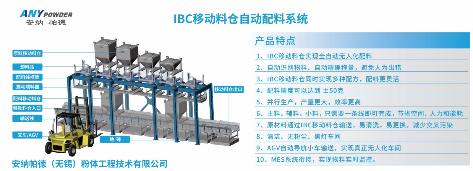 l 原材料通過IBC移動料倉輸送,易清洗,易更換,減少交叉污染