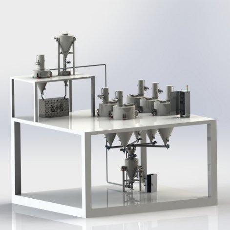 通過螺旋喂料器定量給料,快達到預設重量時,變頻器降低螺旋喂料器轉速,精確喂料,結合和日本京都大學聯合開發的濾震膠確保稱量精度在2‰。根據客戶物料特性、場地條件等實際情況選擇正壓/負壓氣力輸送。