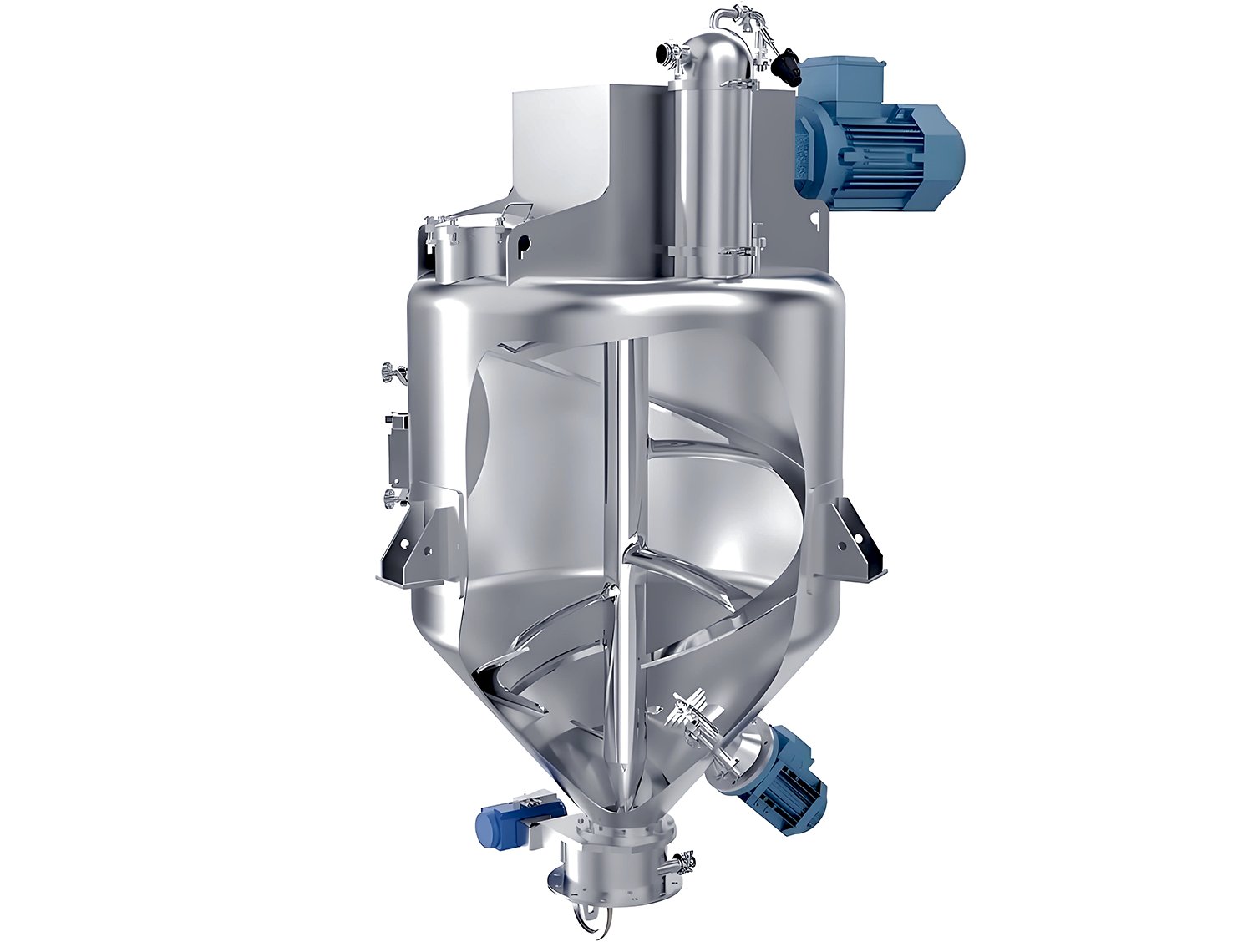 立式高效混合機配有異性結構盤條,和飛刀模塊,工作時,物料在筒體中做上下及圓周循環運動,除此之外,還能將結團的物料剪切、打散,不僅能做到高效混合,還可以提高產品品質。