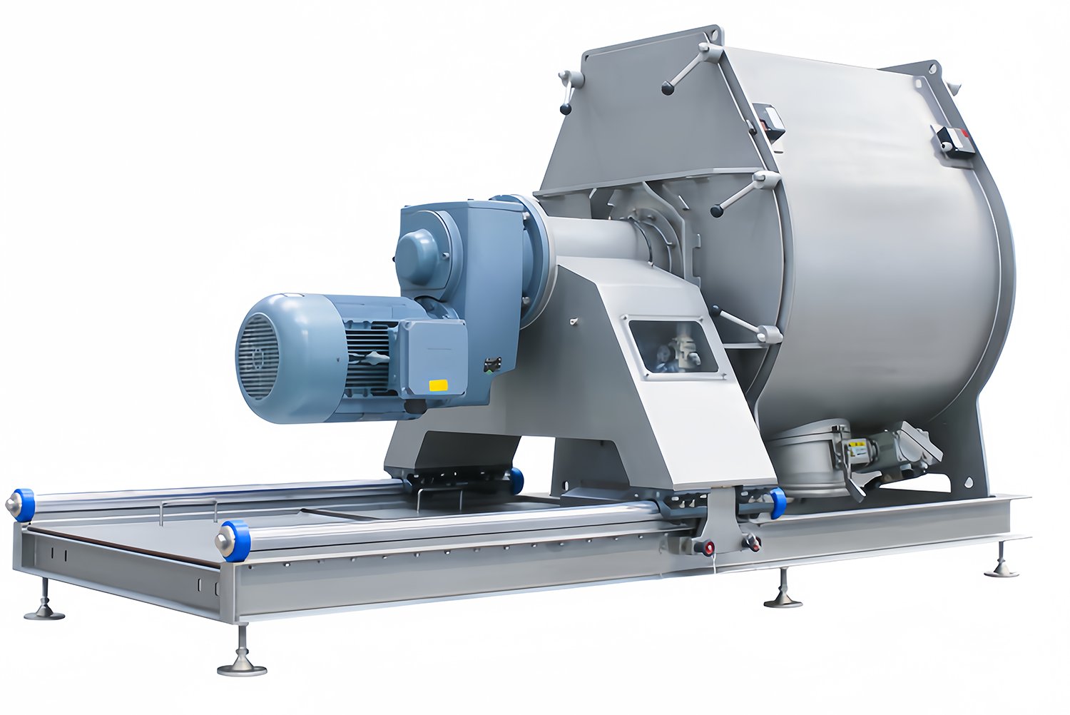 該款混合機采用快拆抽拉式設計,筒體通過導軌與攪拌裝置相連,實現內部裝置的快速拆卸,更換維修更加簡便高效。