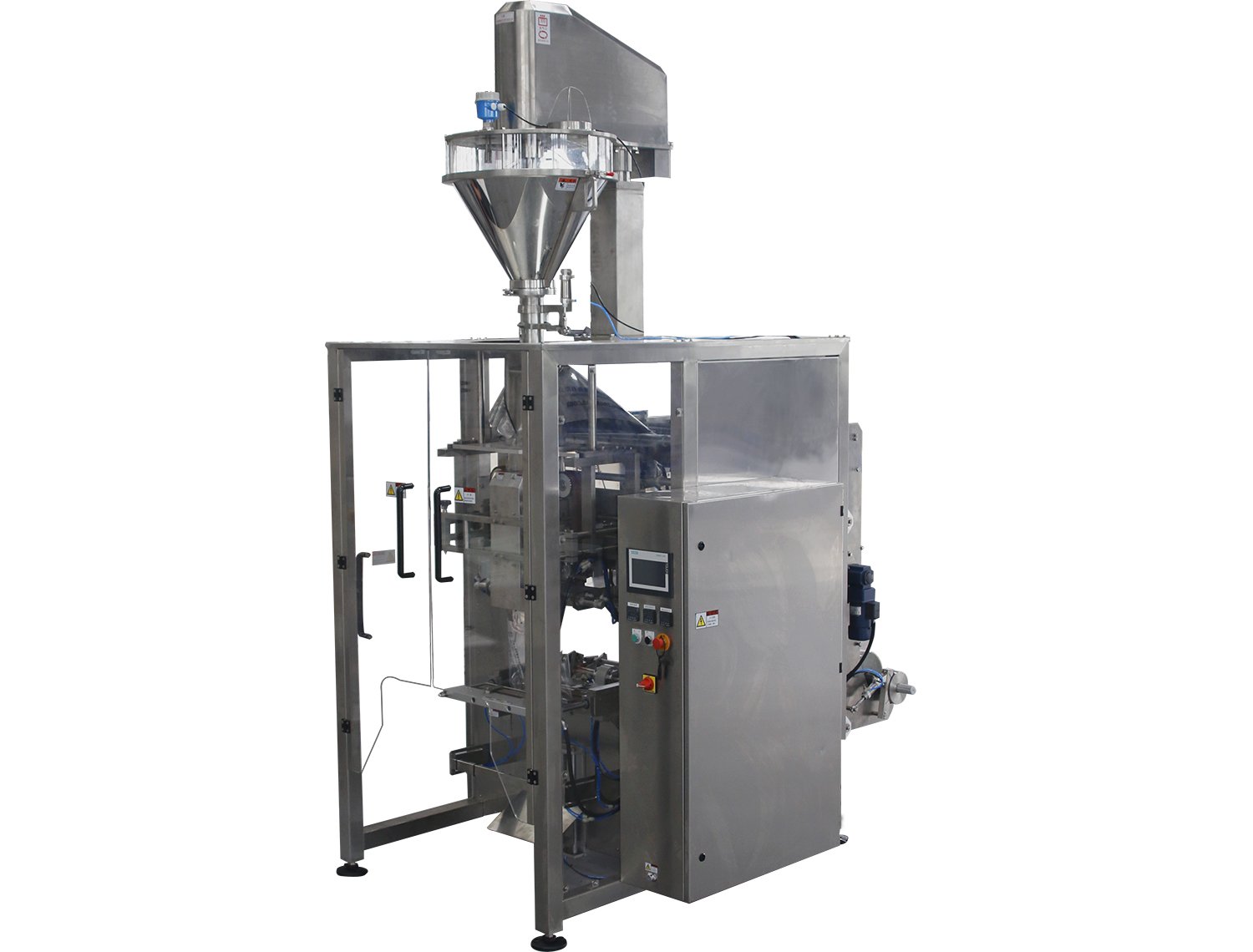 立式包裝機(jī)能自動(dòng)完成原料輸送、稱重計(jì)量、制袋充填、充氣/排氣、打印日期、成品輸送的全部過(guò)程。