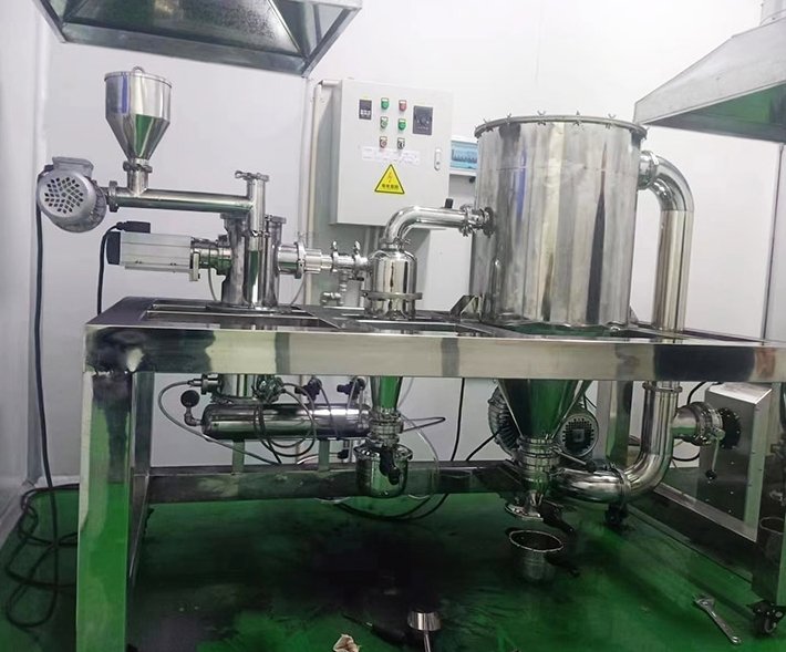 粉碎過程無溫升,無 污染,磨塤小,尤其適應于熱敏性、熔點低、高純度物料的超純超細粉碎。對易燃,易爆物料可用惰性氣體作工質實現閉路循環粉碎。