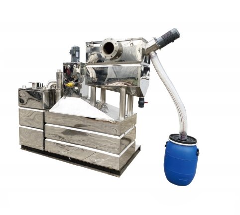 去除污泥的污水再流進油水分離腔,在此進行油水分離。此腔室自帶自動恒溫裝置,溫度保持在25℃左右,保證油脂不固化;水面上方裝有自動刮油裝置,可將水面上的浮油刮入油槽,油通過排油口流入集油桶底部也裝有稱重儀,當(dāng)集油桶中油脂集滿時,稱重儀會給電控系統(tǒng)一個信號,電控柜上的聲光報警器隨即響起,提醒用戶及時更換。