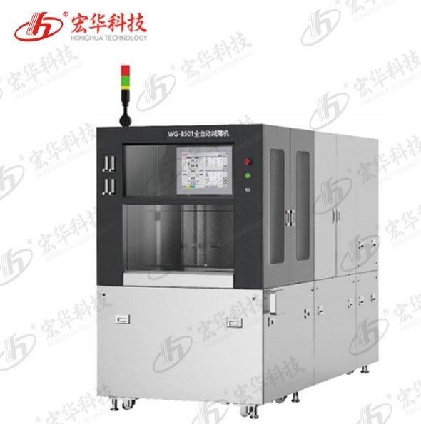 ● 雙主軸三工位全自動減薄機,配有在線測量儀單元,精確控制減薄厚度;配備自主、優化的 8 英寸超精密空氣主軸和氣浮載臺;具備SECS/GEM聯網功能。