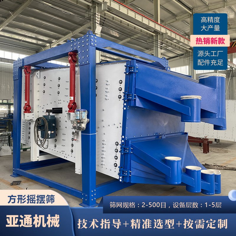 方形搖擺篩是滿足大產量、高精度需求的用戶而研發設計的一種高效篩分設備。方形搖擺篩適用于含水量<10,200目以內,不易結團的顆粒和粉末物料的精確篩分。
