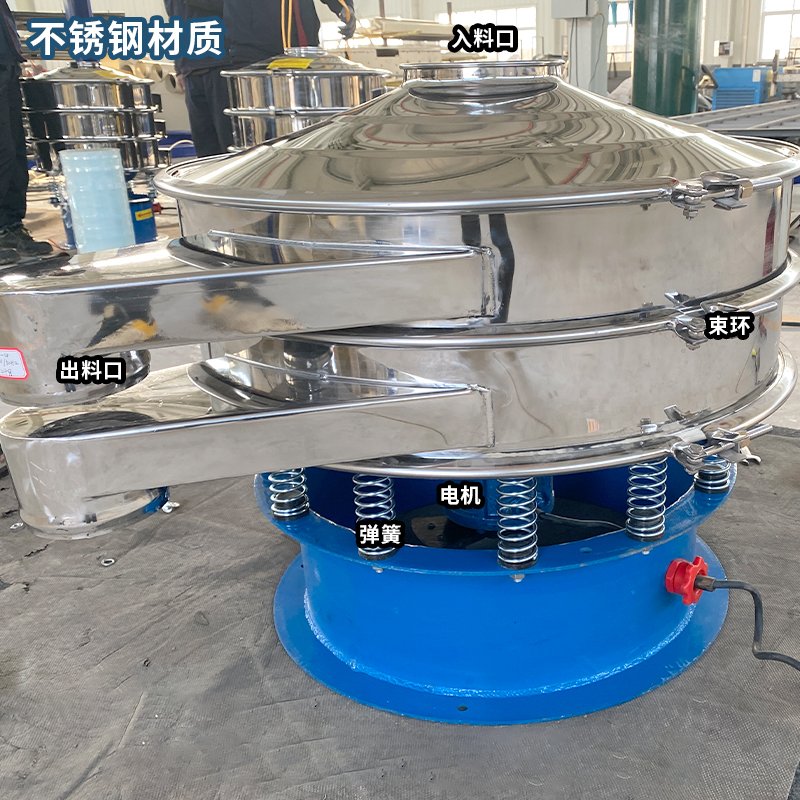 香菇粉旋振篩與物料接觸部分為采用304不銹鋼材質,底座為碳鋼材質。香菇粉旋振篩是一種高精度細粉篩分機械,工作原理是由直立式電機作激振源,電機上、下兩端安裝有偏心重錘,將電機的旋轉運動轉變為水平