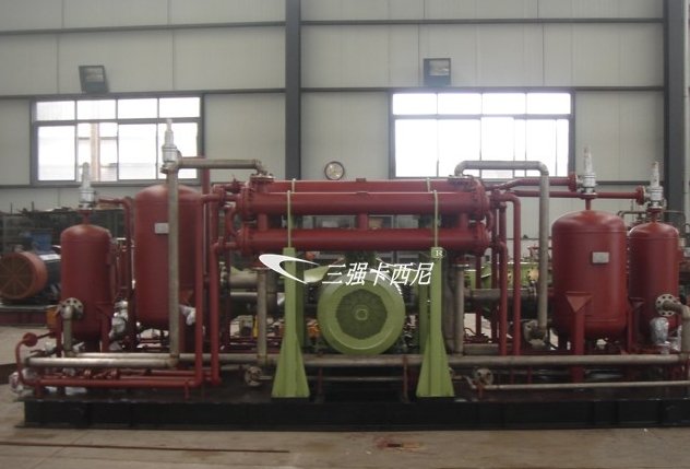 活塞式氯乙烯壓縮機主要為化工工業的工藝流程所用,一般為無油潤滑型式,排氣量大,排氣壓力不高,排氣壓力可從0.1 ~2 Mpa;排氣量可從10~20000 Nm3/h。其中,進氣壓力、排氣壓力和排氣量,均可允上下波動變化;壓縮級 數可為1~3級。適合連續運行。