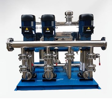恒壓供水設備采用氣壓式供水。利用密封罐體,利用罐內高壓氣水壓力達到供水目的。具體工作順序是由水泵將水通過逆止閥壓入罐體,使罐內氣體受到壓縮,壓力逐漸增大。當壓力達到指定上限時電接點壓力表通過控制柜使泵機自動停止。設備中的水壓高于外界管網壓力,自動送水到供水管網。當罐體內水位下降,罐內氣體膨漲壓力減小到指定的下限位置時,電接點壓力表通過控制柜使水泵重新啟動。如此反復,使設備不停供水。當罐內氣體不足時,補氣閥可自動補氣。