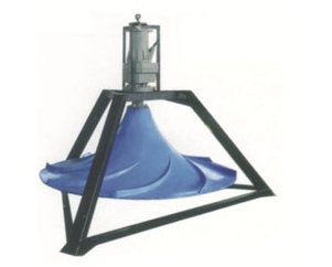 獨特的葉輪結構設計,**限度地將流體特性與機械運動**地結合。多曲葉輪的曲面是方程為xy=b,曲線沿y軸旋轉而構成的曲面體;為了迎合水體流動,設計從葉輪的中心進水,這一方面減少了進水紊流,另一方面保證了液體對葉輪表面的壓力均勻,從而保證整機在運動狀態下的平衡。在漸開多弧面上均布有八條導游葉片,借助液體自重壓力作補充進水獲得的勢能與葉輪旋轉時產生的離心力形成動能,液體在重力加速度的條件下沿葉輪圓周方向作切線運動,在池壁的反射作用下,形成自下而上地循環水流,故可獲得在軸向(Y)和徑向(X)方向的交叉水流。正是由于多曲面攪拌機葉輪的結構特性和接近池底安裝的特點,決定了它在工作中可獲得理想的攪拌效果,能有效地消除攪拌死角。見下圖: